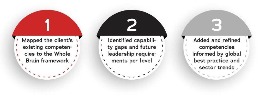 We began by creating ideal profiles for each of the three leadership levels in the organisation, using the Whole Brain® methodology as the foundational framework.