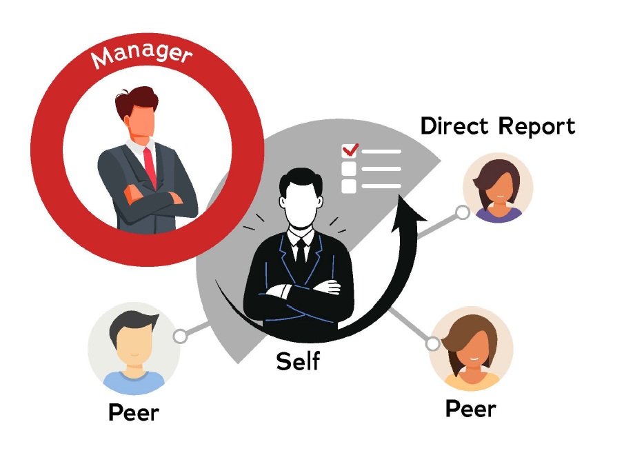 A 360° assessment is a multi-rater feedback process that gathers structured input on leadership behaviours from multiple perspectives, typically including: